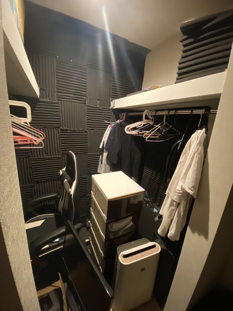 実は私、いまウォークインクローゼットを改装し、現在防音室を製作中です!!