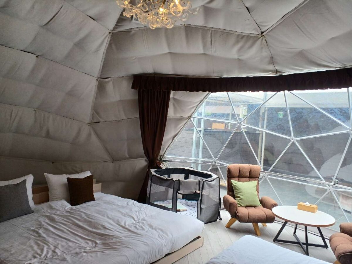 グランピングは初めてだったんですが、想像以上に快適で、自然の中でのんびりしながらも、ちょっと特別感のある空間に癒されました。 テントと言っても中はまるでホテルのよう。清潔で広々とした空間に、ベッドやエアコン、食事スペースまで完備。 アウトドアがそこまで得意じゃない私でも、リラックスして楽しめる設備が整っていて、安心感も抜群でした。