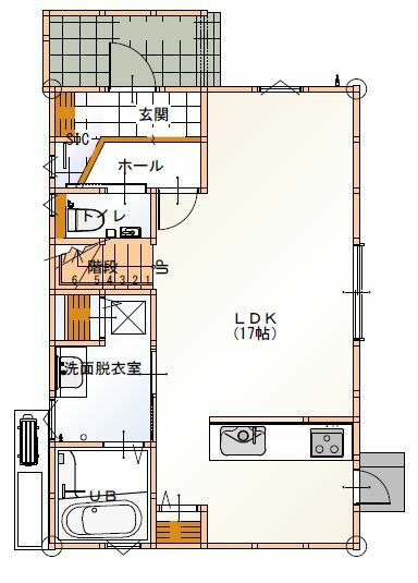 北向きの玄関・階段を直結させた間取り