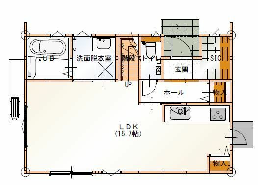 こちらは縦長の住宅で、北向きの玄関から一直線に水回りを配置しています。
