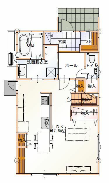 玄関・階段は意外と必要面積が大きい部位のため、集約して配置することで、居室・水回り・収納のための面積を確保しやすくなります。