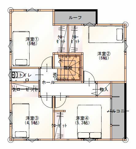 - 西・北の方角に玄関・水回りを集約させることで、南・南に居室を配置しやすい