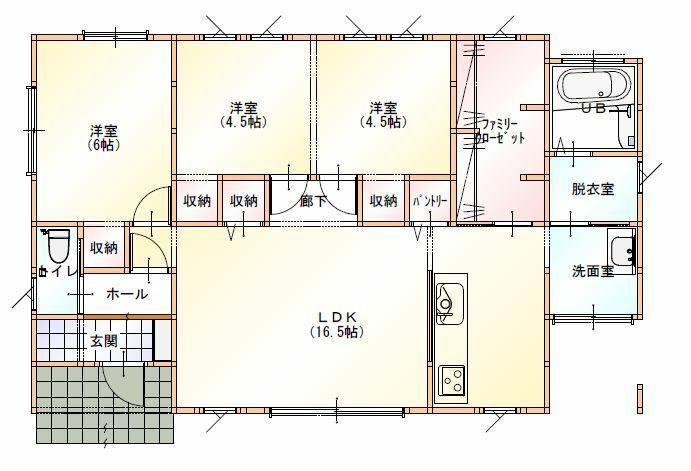 ここからは、施工実例の中から、南向きの玄関を採用した横長タイプの平屋の間取り実例4選を紹介します。