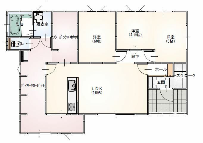 横長の平屋なら、このような直線的な配置が取りやすいため、効率の良い動線が自然と実現できます。