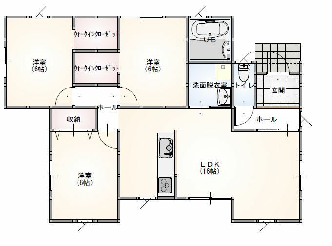 LDKとすべての居室・水回りが直結している間取りのため、ご家族がコミュニケーションをとりやすく、家事もスムーズに進みます。